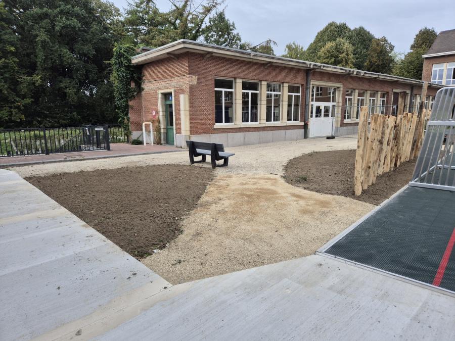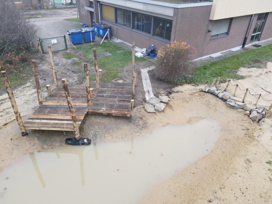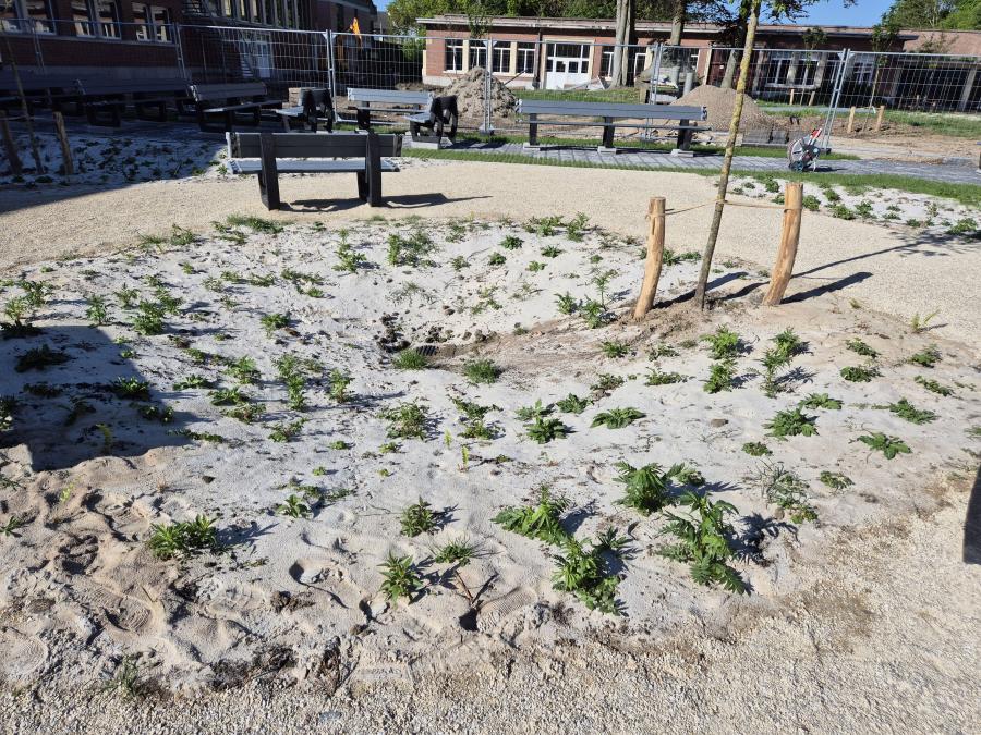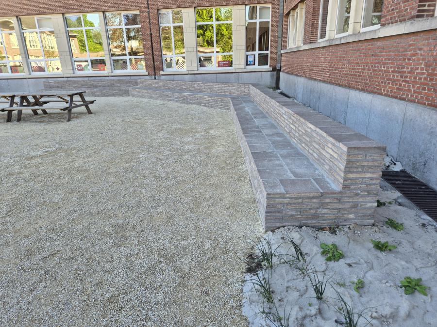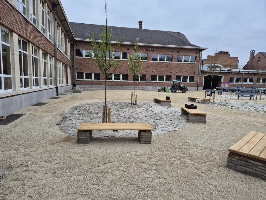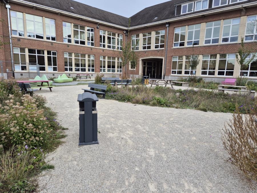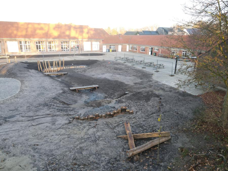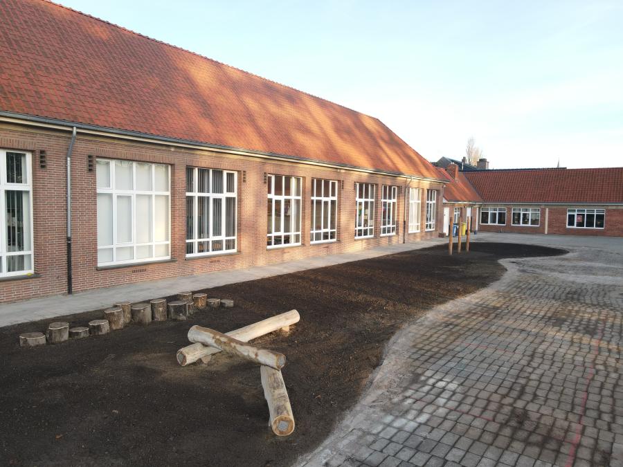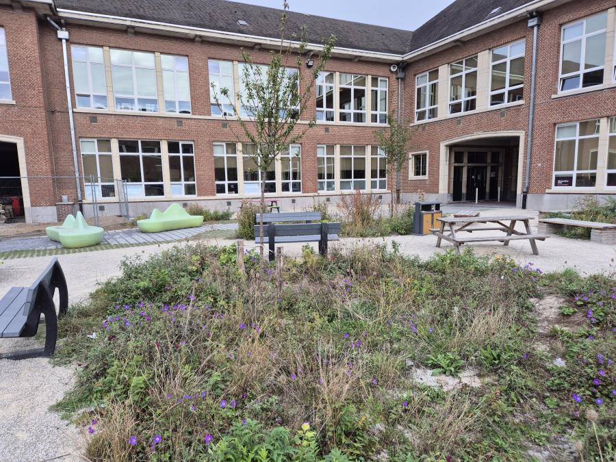 Allemaal scholen waar we de laatste 6 maanden onthardingsprojecten hebben mogen uitvoeren. Al deze projecten beogen dezelfde winwinsituatie. Door het wegnemen van grotere verharde oppervlakten, eventueel gekoppeld aan het integreren van afgekoppeld hemelwater, wordt waterinfiltratie en -captatie bevorderd. Verder leggen we de ontharde zones steeds op een natuurvriendelijke en avontuurlijke manier aan. Bloemenweides, streekeigen beplantingen en robuuste speelaanleidingen brengen de schoolgaande jeugd dichter bij de natuur en avontuurlijk ravotten.